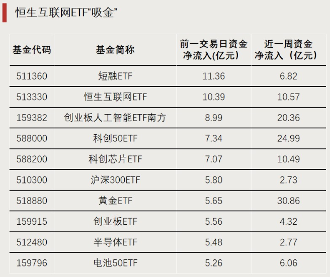 当天,科技股整体回落,但相关ETF被资金逆势买入,创业板人工智能ETF南方、科创50ETF、科创芯片ETF净流入额超7亿元。